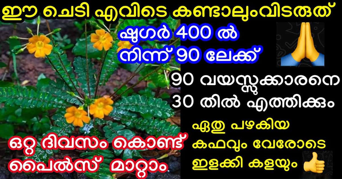 നിങ്ങളുടെ തൊടിയിലും പറമ്പിലും ആർക്കും വേണ്ടാതെ കിടക്കുന്ന ഒരു കിടിലൻ ഒറ്റമൂലിയുണ്ട്. അതാണ് മുക്കുറ്റി. ശരിയായ രീതിയിൽ ഉപയോഗിക്കുകയാണെങ്കിൽ 80% രോഗങ്ങൾക്കും ഇതൊരു നല്ല ഒറ്റമൂലിയാണ്. ഷുഗർ, പൈൽസ്, കാലപ്പഴക്കം ചെന്ന കഫം ഇളക്കൽ, തുമ്മൽ, അലർജി തുടങ്ങി നിരവധി അസുഖങ്ങൾക്ക് ഇതൊരു ആശ്വാസ മാർഗമാണ്. മുക്കുറ്റി കൊണ്ടൊരു കിടിലൻ കൂട്ട് നമുക്ക് ഉണ്ടാക്കാം.